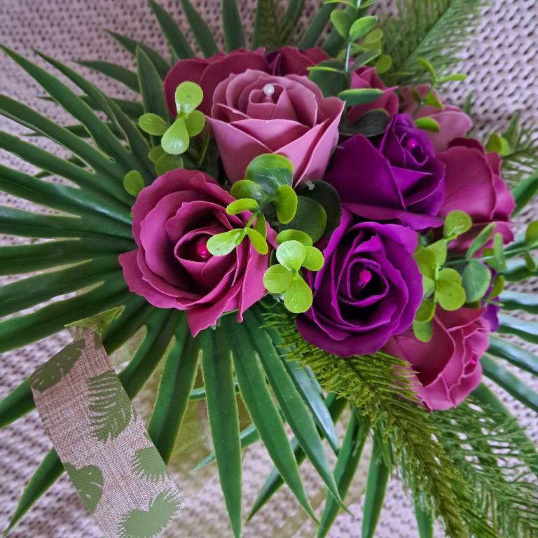 Az élethű, 2 árnyalatú mályva szappanrózsa csokor tökéletes ajándék bármilyen alkalomra akár férfiaknak is 🙂