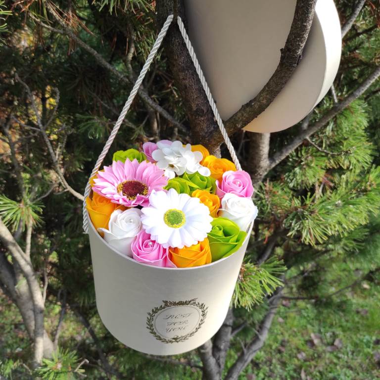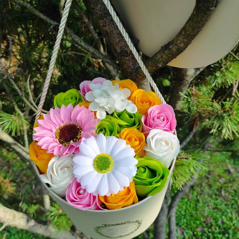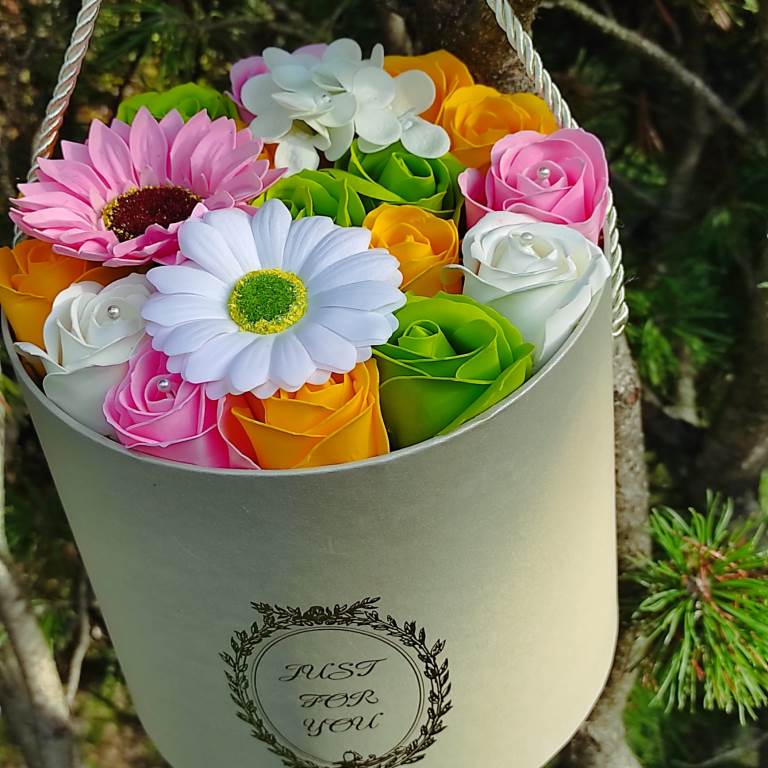 Színes szappanvirág összeállítás bármilyen alkalomra.